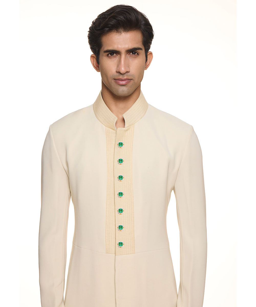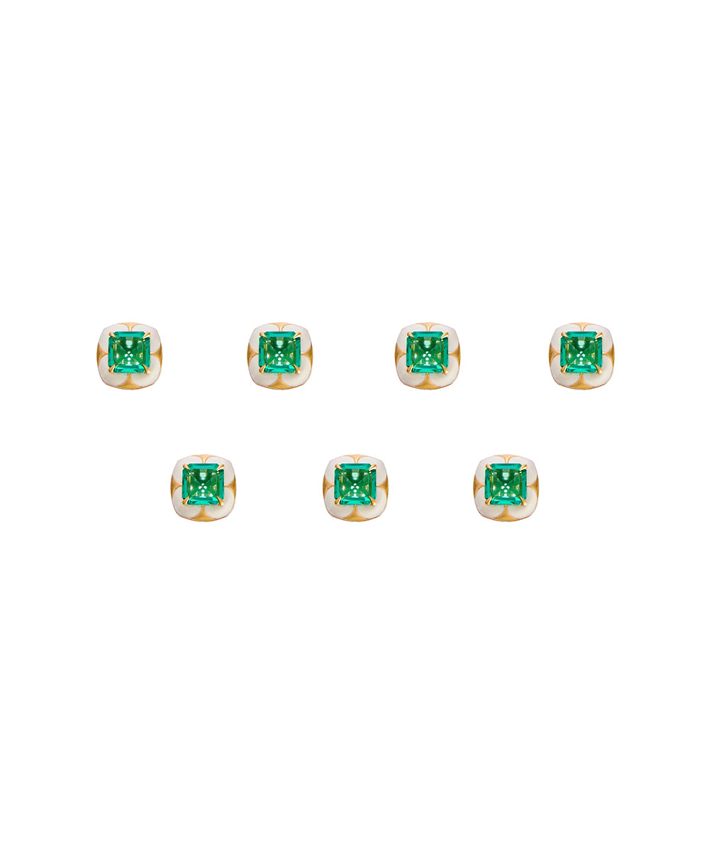 Button links made in silver alloy, am emerald doublet in centre with meenakari.
