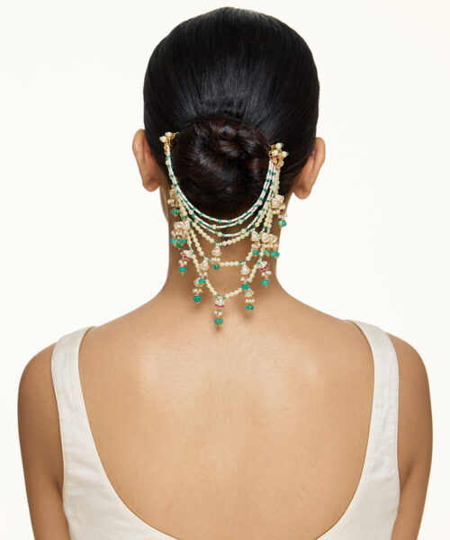 Story Inspiration: Rooh Bandh evokes the spirit of bridal celebration?its layered strands and gemstone detailing crafted to crown the bride with movement, grace, and timeless splendor.