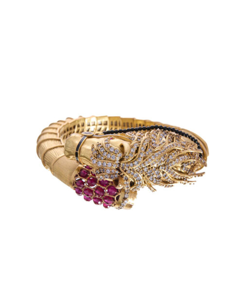 Bangle Crafted in silver alloy, this bangle features lustrous black pearls, cubic zirconia, and vibrant ruby stones. A sophisticated design that brings a royal touch with refined elegance